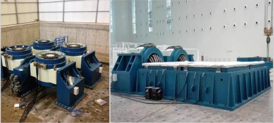 目前,航天希爾公司大推力振動臺系統已經形成10噸-80噸多種系列化產品,突破了多項關鍵技術。動圈繞組采用電阻抗高、水阻低的結構設計方法及工藝技術,有效地解決了大功率線圈繞組的冷卻難題,保證了系統長時間工作的可靠性;導向系統采用創新性承載及導向技術,解決了系統的高靜壓承載和大抗傾覆能力,確保系統靜負載高達百噸,滑臺抗傾覆力矩達到1600kN·m,并實現了滑臺縱橫振動的解耦,滿足了航天、航空等大型試驗件的振動試驗需求,也為我國軍工和民用產業的發展提供了強有力的試驗裝備保障。