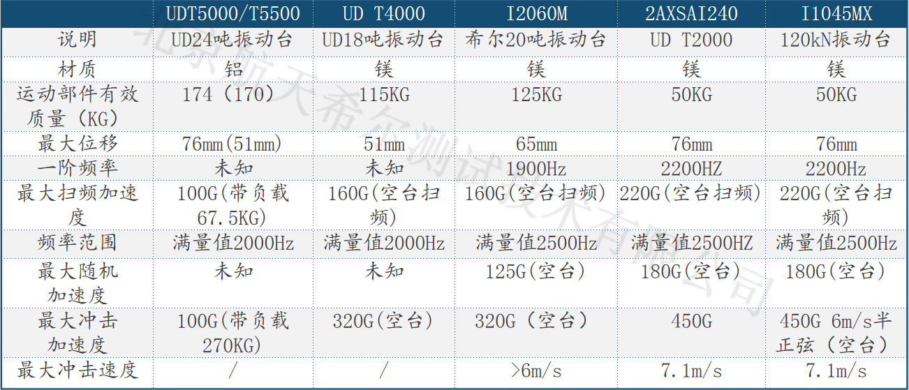 五、國內外感應式振動臺性能對比:
