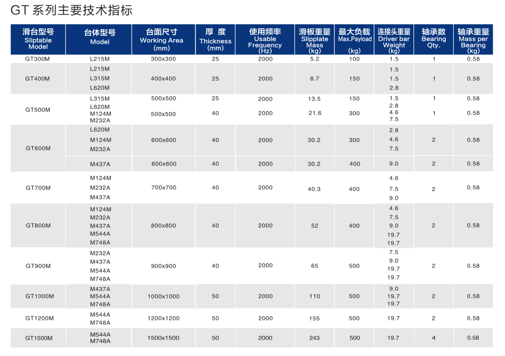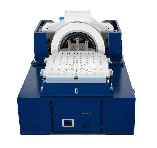 電動振動臺配置水平滑臺可實現三向振動試驗。也可以配合溫、濕試驗箱形成復合環境試驗系統。 多軸向水平滑臺可以與任何振動臺配用,為水平方向測試提供最佳的試驗平臺。根據一體化理念設計制造的鋼結構基座,為電動振動臺和水平滑臺的校準提供了一個堅固平臺。水平滑臺設計選用精加工的天然花崗巖和優質的導向軸承,從而能夠滿足不同應用要求。加固的焊接臺體具有良好的反作用質量和阻尼效果。內置隔振系統可以減少到地面的振動傳播,防止試驗設備間的干擾。 利用渦輪-渦桿或鏈輪轉動系統,一個人能單獨輕松地轉動振動臺臺體與水平滑臺連接。利用機械限位裝置可以確保水平滑臺與振動臺的連接。 水平滑臺按連接方式劃分為斜面連接和垂直連接(根據用戶要求選用);按導向方式分為GT系列的V型導軌導向方式、BT系列的靜壓軸承導向方式、TT系列的靜壓軸承導向方式。 滑板的面積、厚度決定活動系統的質量,也會影響臺面的上限頻率;用戶可特殊定制。
