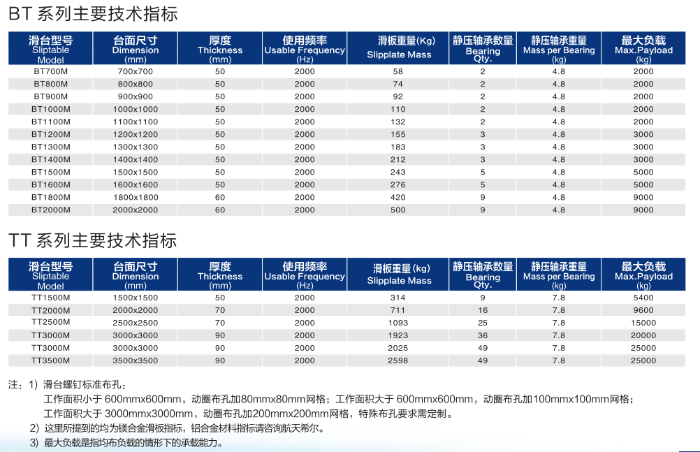 TT系列靜壓軸承水平滑臺主要適用于大尺寸試驗件的水平振動試驗,可以提供比BT系列靜壓軸承水平滑臺更大的承載力和抗傾覆力矩。