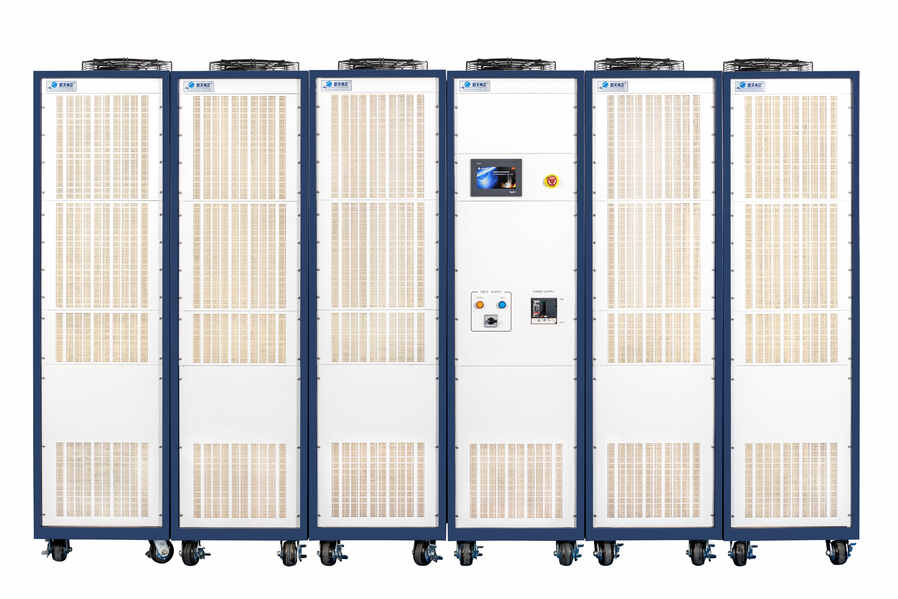 振動臺系統已全面使用高效的“IPA系列”類功率放大器。IPA系列功率放大器采用集成硬件FPGA編程陣列, 可編程控制器PLC,可觸摸人機交互實時操作顯示系統三大部分組成。功率放大器系統由EMI電磁屏蔽控制、三相電整流輸出、PLC控制、液晶觸摸屏操作顯示、直流勵磁輸出、功率放大器模塊等組成。采用風冷散熱,并聯式的模塊設計結構可以配套到1200kVA的功率輸出。采用緊湊型設計,使得每個功放柜最大可以輸出功率240kVA,具有遠程控制功能,允許從外部實現對功率放大器、振動臺進行控制、監控。IPA系列功率放大器直接耦合到振動臺,它可以替換以前的水冷或效率不高的功率放大器。